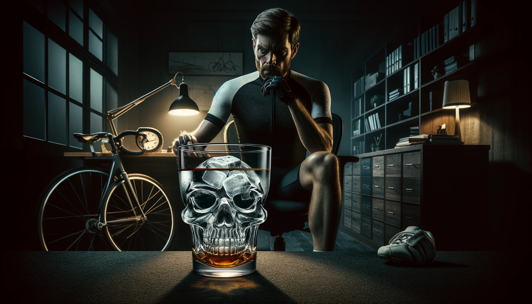 Calvin Friser seguía sentado en la silla principal de aquel espacioso despacho, iluminado por una lamparita de escritorio que apenas dejaba ver el entorno. Sostenía su vaso de whisky con la mano derecha, a la altura de sus ojos. Sus pensamientos se centraban con espanto en explicarse la extraña transformación que creía ver en el hielo al mezclarse poco a poco con el licor ambarino. Desde su perspectiva, veía cómo el par de cubitos, tras fundirse entre sí, comenzaban a adoptar una inquietante forma de cráneo, con oquedades muy parecidas a los huecos de una nariz, unos ojos y una boca. No podía apartar la mirada de esta sugestión macabra de su mente, sin ninguna duda influida por la situación que acababa de vivir.
