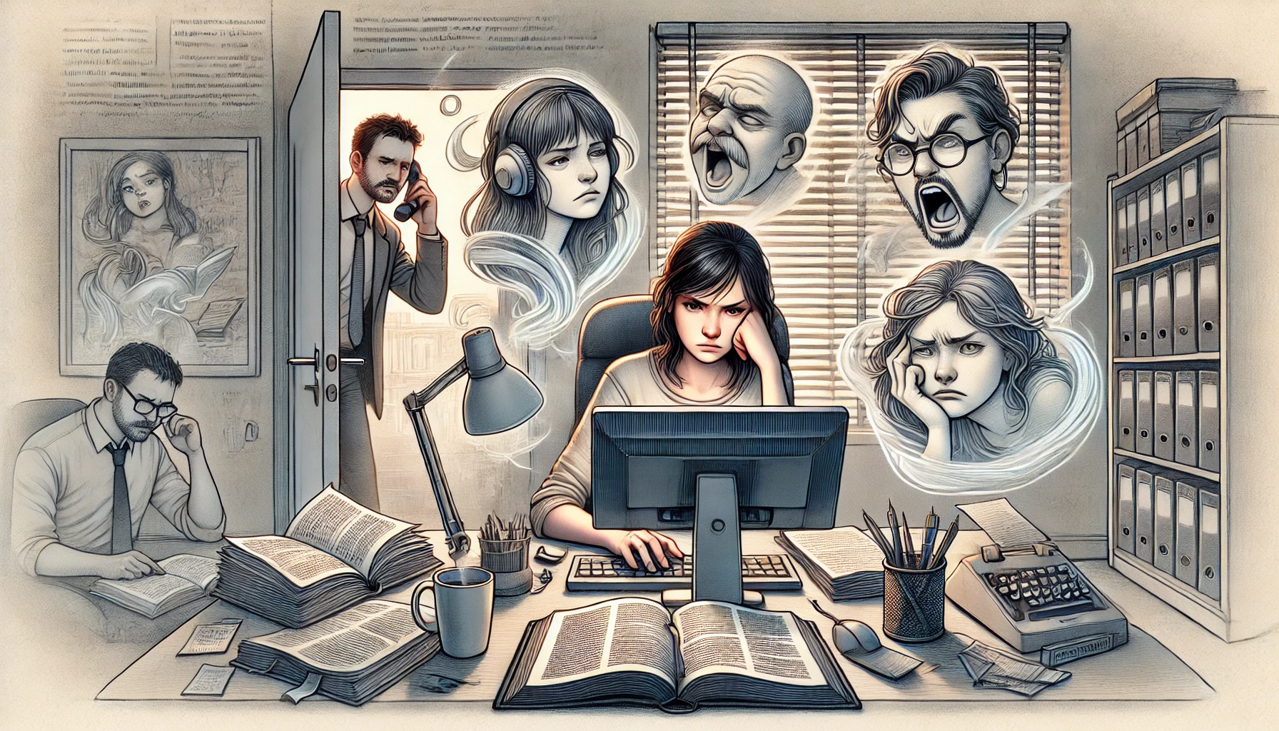 «Frunció el ceño, frunció el ceño… ¡Parece una coreografía de cejas!» mascullaba mientras daba un sorbo a su café ya frío. Buscó alternativas en el diccionario de sinónimos, pero nada sonaba bien: «arrugar el entrecejo» parecía un gesto de caricatura; «fruncir el entrecejo» era aún más rebuscado, y «hacer una mueca» podía referirse a cualquier cosa, desde un leve tic facial hasta un grito interno de angustia.