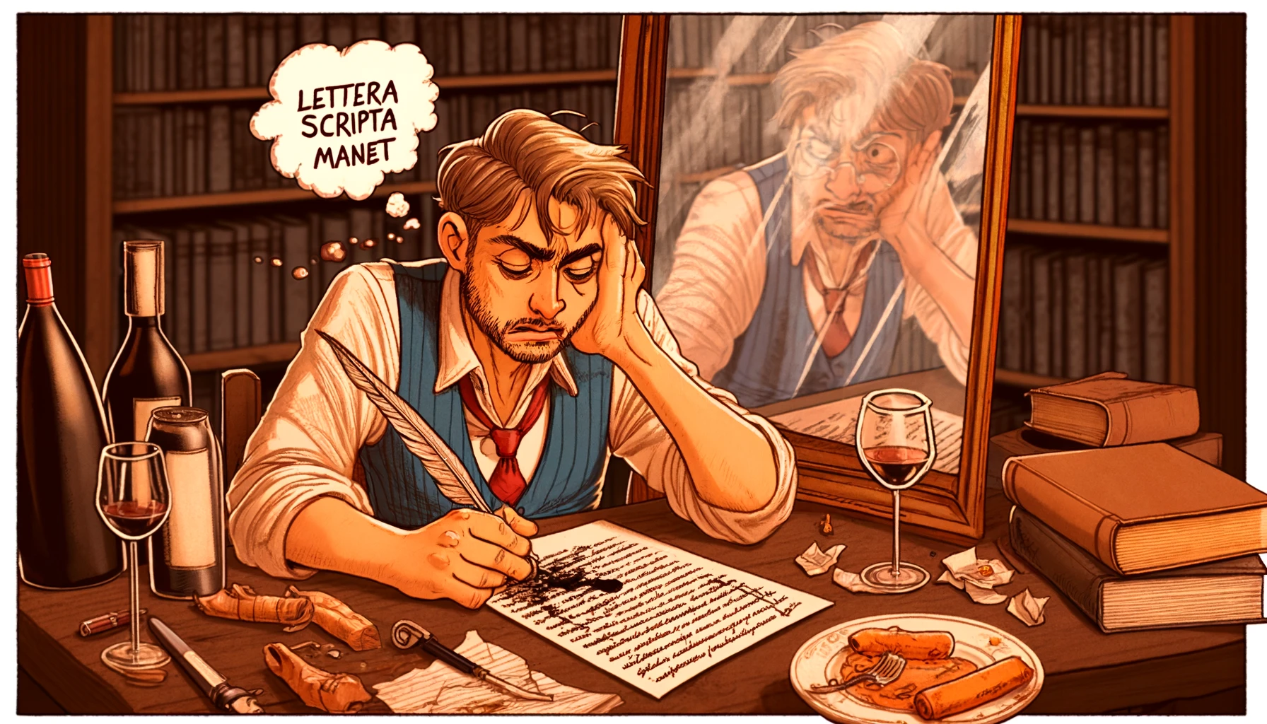 En esos momentos de embriaguez culinaria —y también enológica, obvio— es cuando el autor, o mejor dicho, este pobre diablo que intenta serlo, recuerda la maldición latina: lettera scripta manet, que resuena como un eco entre sus sienes. No es para menos, porque lo que escribes se queda, y la responsabilidad te agarra por el cuello, te sacude y te deja temblando.